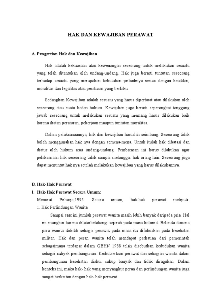 Hak Dan Kewajiban Perawat Paper Etika