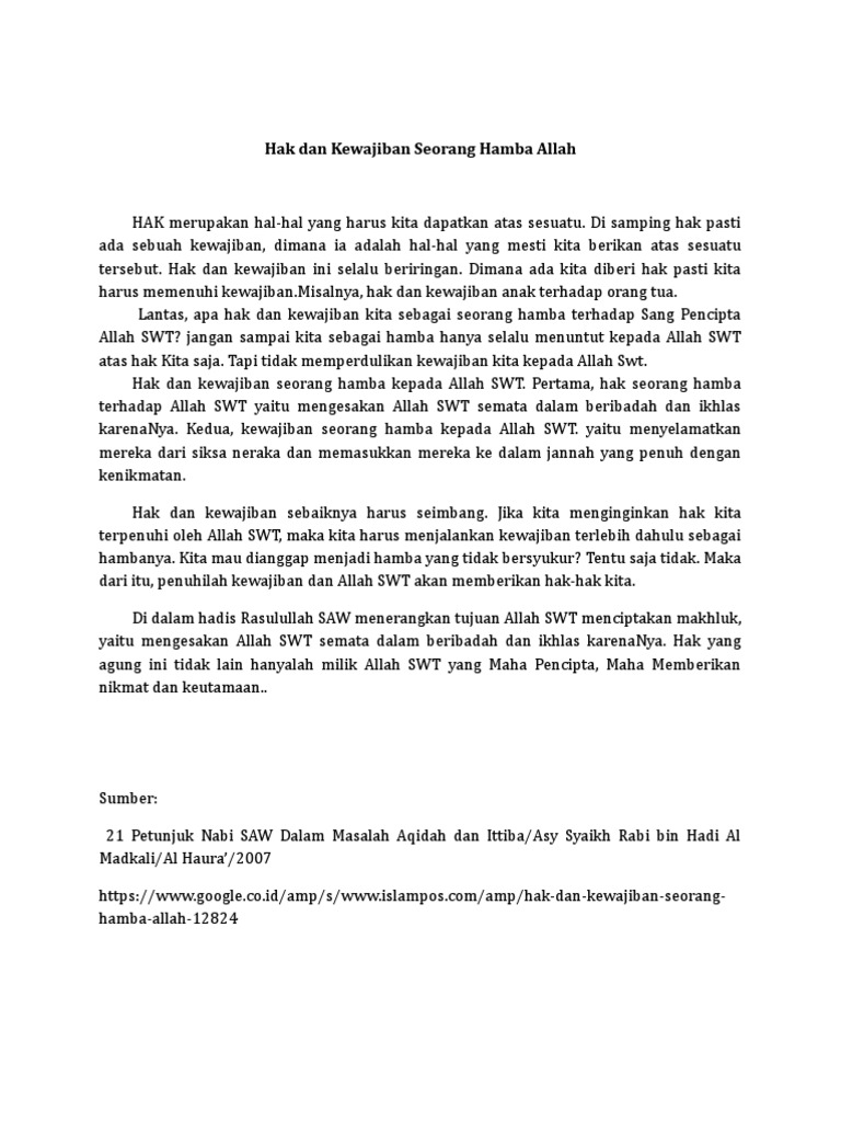 Hak Dan Kewajiban Seorang Hamba