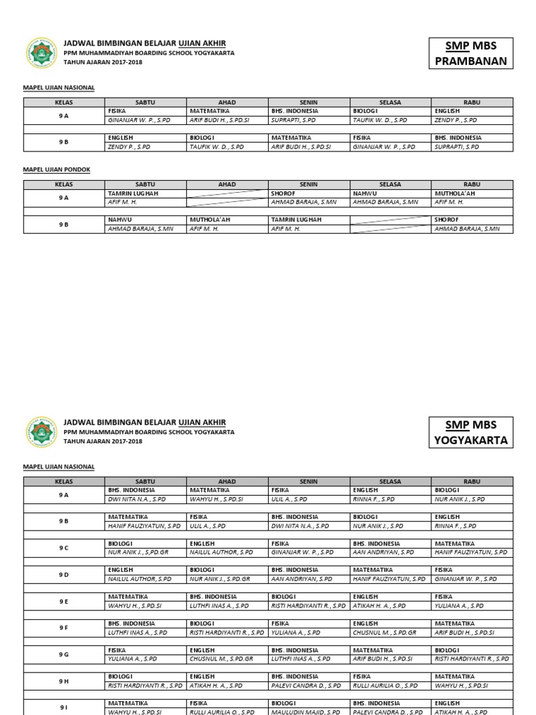 Jadwal Bimbel Ujian Akhir 2017 2018