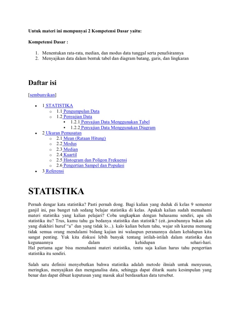 Materi Matematika Smp Kelas Ix Statistika Duniamatematika Com