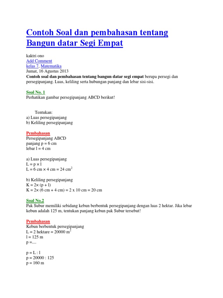Contoh Soal Dan Pembahasan Tentang Bangun Datar Segi Empat Docx