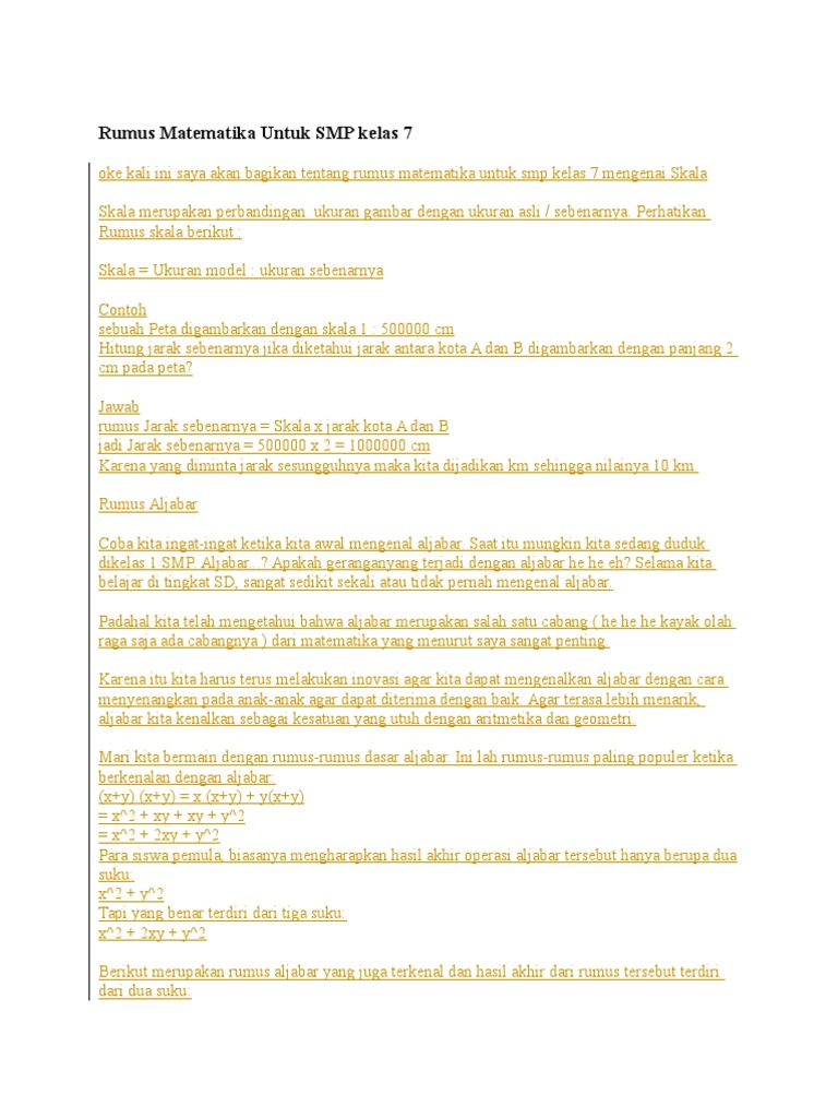 Rumus Matematika Untuk Smp Kelas 7