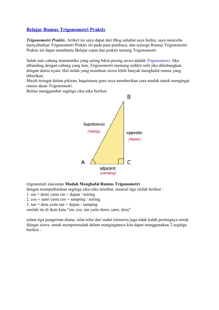 Kumpulan Rumus Trigonometri Sd Smp Sma Paling Lengkap