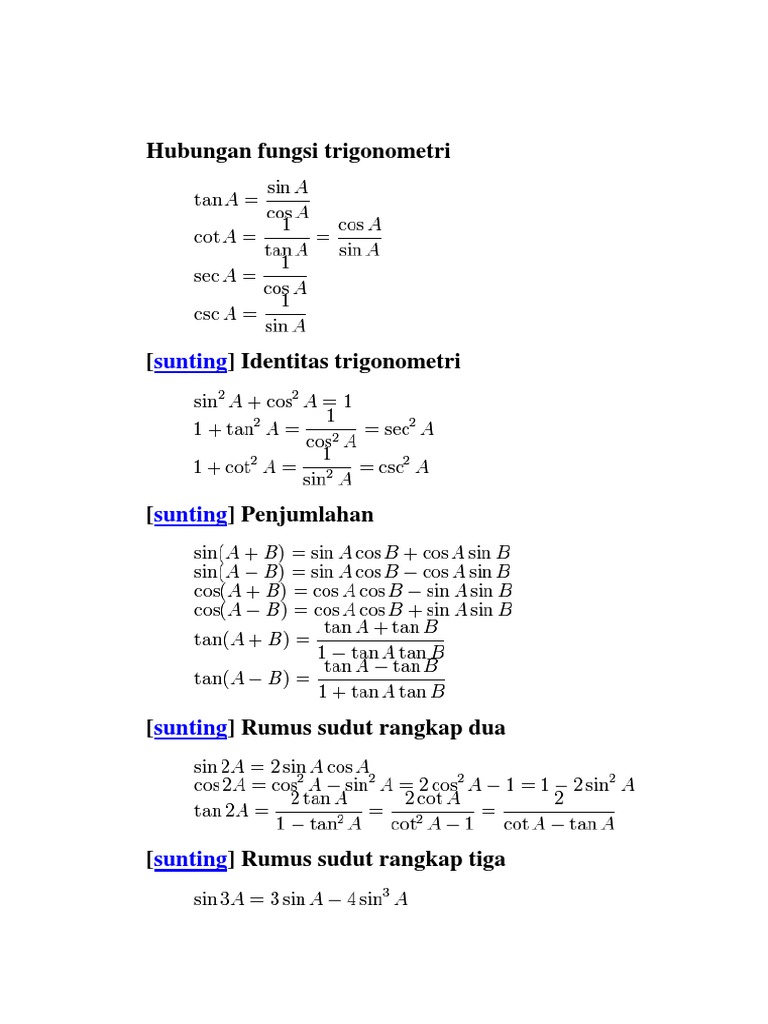 Trigonometri Rumus Sinus Cosinus Tangen Secan Cosecan Cotangen