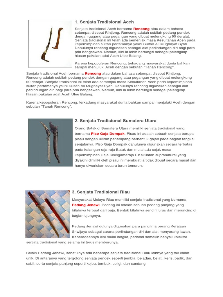 Senjata Tradisional Sumatera Selamat Datang Di Pt Ppa Persero