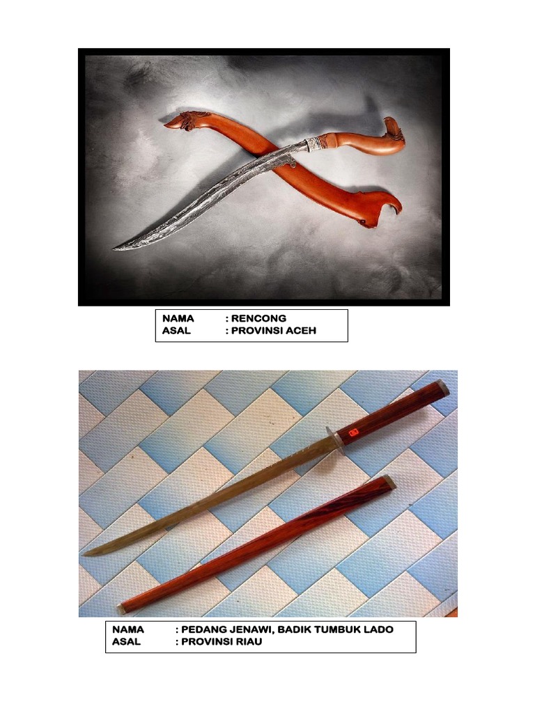 Untuk melihat keterangan pedang jenawi dapat sobat buka di halaman senjata tradisional kepulauan riau. Berikut ini 5 senjata tradisional riau beserta gambar dan keterangannya. Riau berbagi pedang jenawi merupakan senjata tradisional yang dimiki oleh riau.