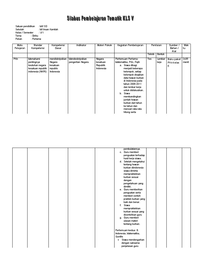 Silabus Kelas 5 Sd Mi Kurikulum 2013 Revisi 2018