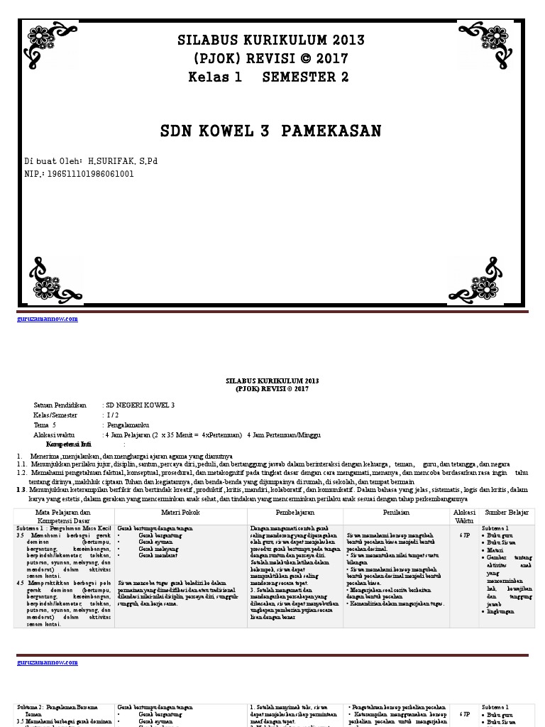 Down Oad Silabus Pjok Kelas 1 2 3 4 5 Dan 6 K13 Revisi 2018 Semester