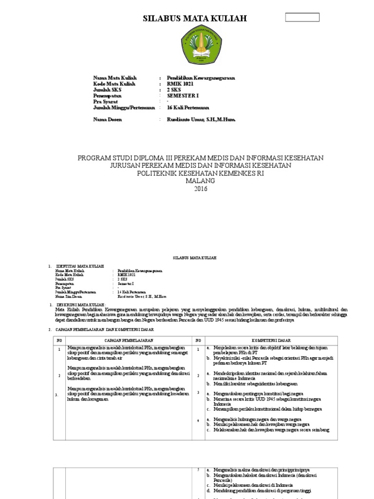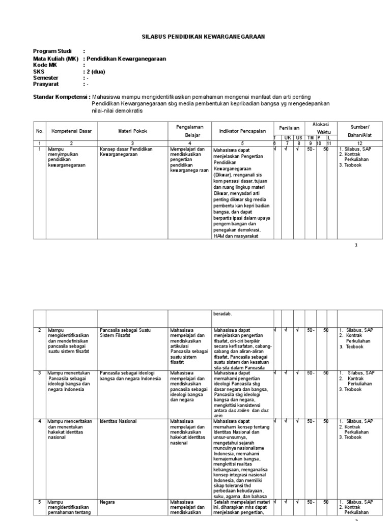 Silabus Mata Kuliah Kewarganegaraan Ok