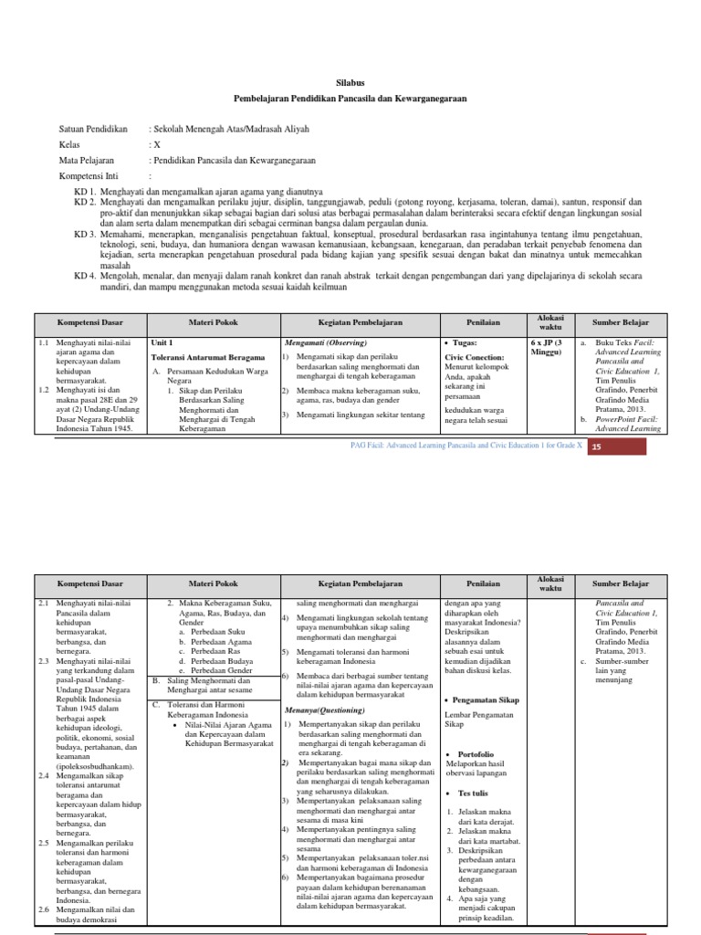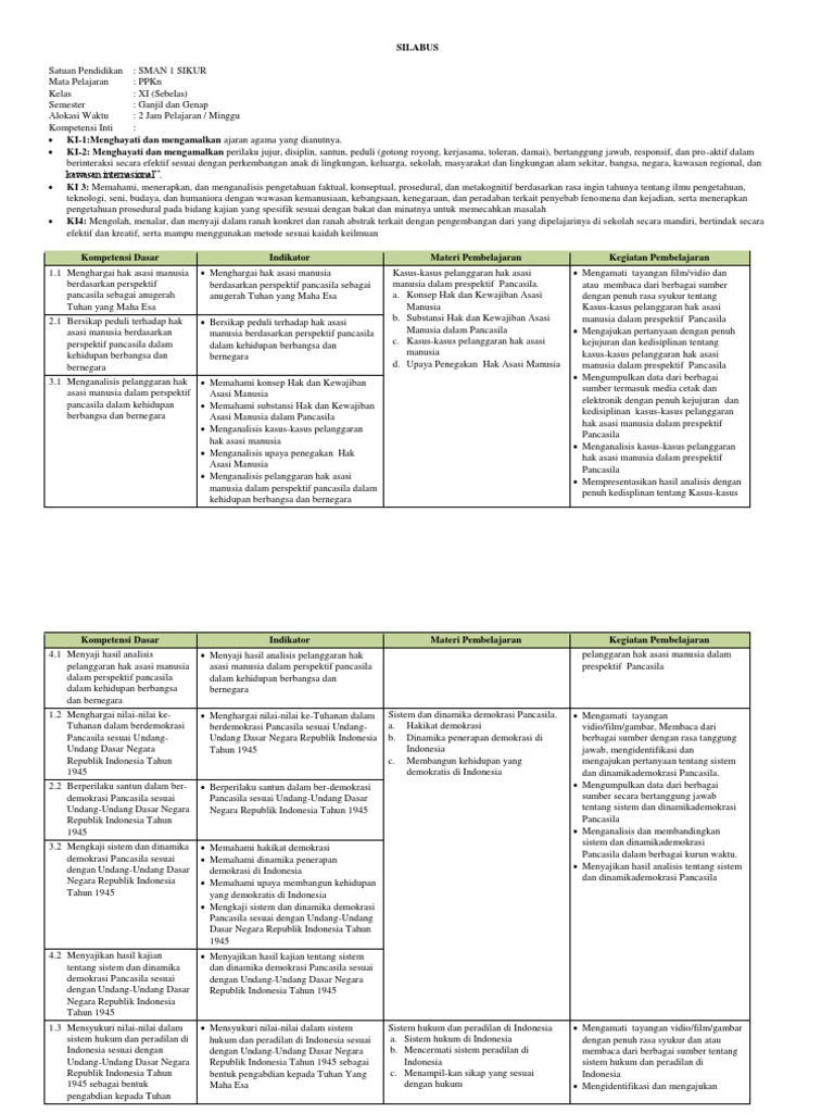 3 Silabus Pkn Sma Syaiful Islami Academia Edu