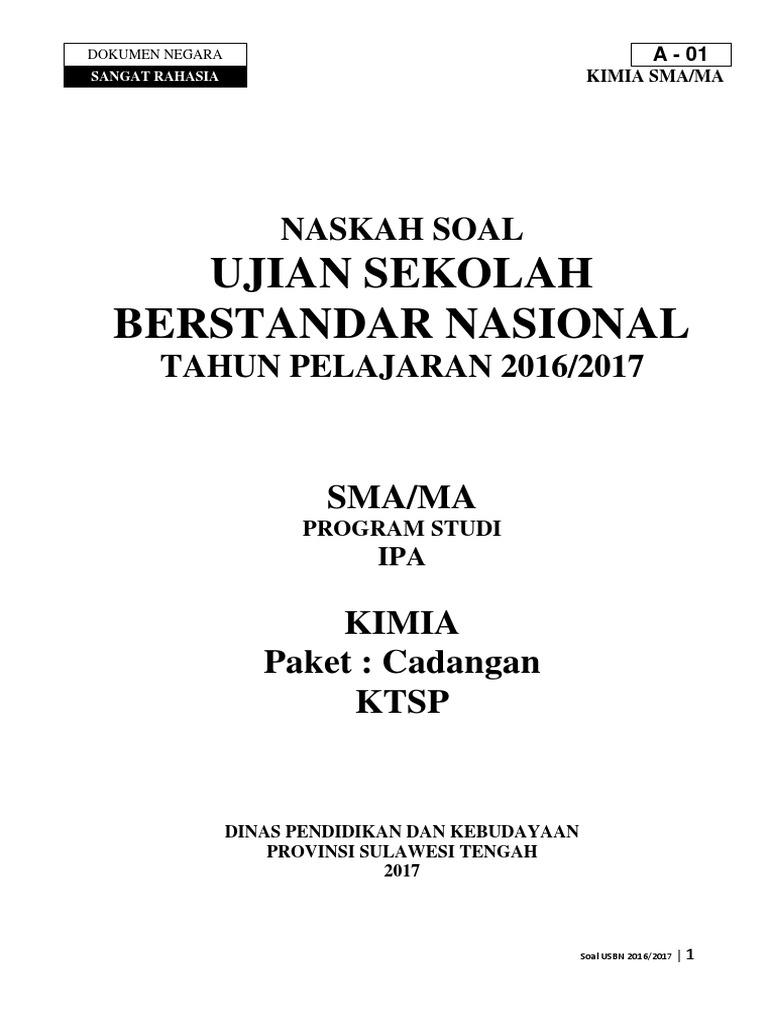 Naskah Soal Usbn Sma Kimia Tahun 2018