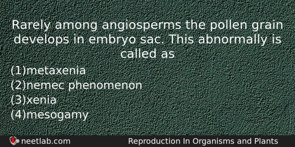 Rarely Among Angiosperms The Pollen Grain Develops In Embryo Sac