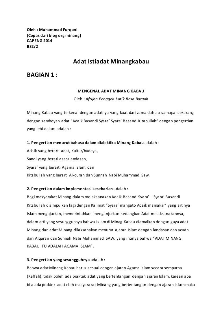 Sederhananya adat minangkabau itu artinya bapucuak sabana. Tradisi artinya adalah pikiran budi atau adat istiadat. Orang sidenreng menamakan penduduk daerah ini dengan sebutan to riaja artinya orang yang.