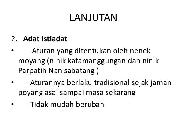Adat yang sebenarnya adat adalah adat yang tak lekang oleh panas tak lapuk oleh hujan dipindah tidak layu dibasuh habis air.