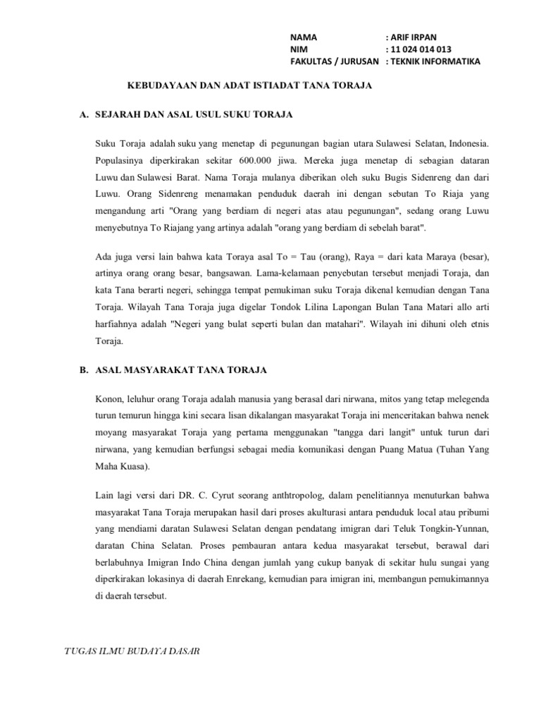 Kebudayaan Dan Adat Istiadat Tana Toraja