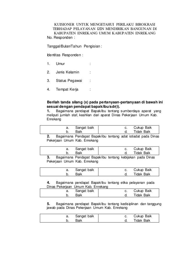 Kuisioner Untuk Mengetahui Perilaku Birokrasi Terhadap Pelayanan Izi