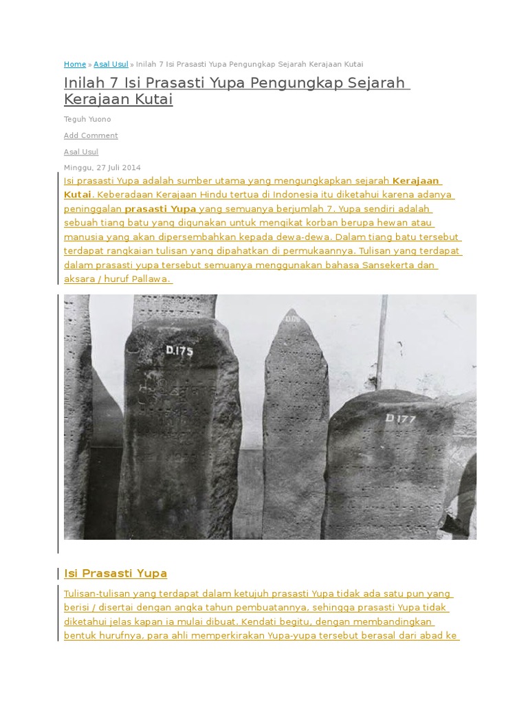 Sumber Sejarah Kerajaan Kutai 7 Yupa Dan Isinya Ips Mudah