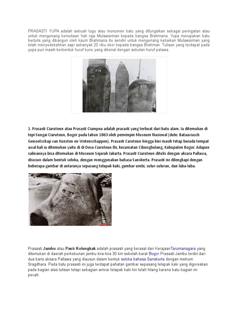 Prasasti Yupa Adalah Sebuah Tugu Atau Monumen Batu Yang Difungsikan