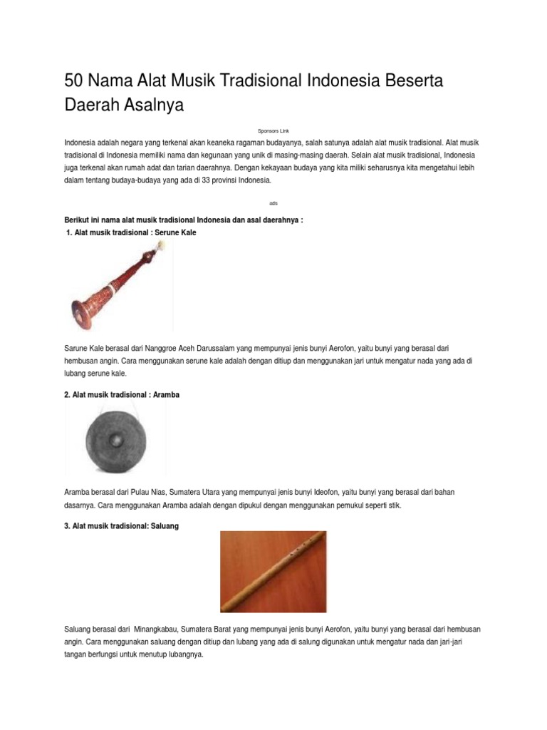 Daftar Alat Musik Tradisional Di Indonesia Kamus Data