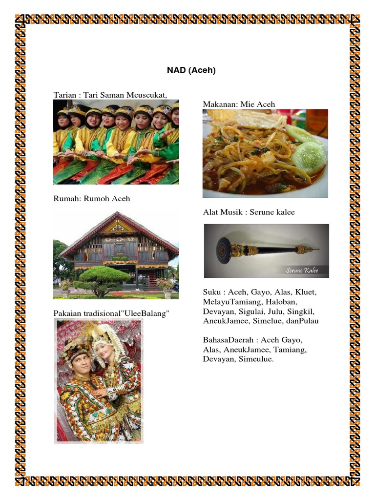 34 provinsi di indonesia lengkap dengan pakaian tarian rumah adat senjata tradisionalsukubahasa daerahpeta dan gambar. Tari saman tarian tradisional ini dulunya adalah tarian etnis suku gayo dimana ras tersebut sebagai ras tertua di pesisir aceh saat masa itu. Kumpulan judul contoh skripsi manajemen perusahaan.