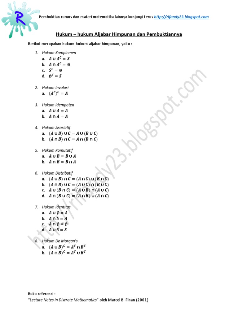 Hukum Hukum Aljabar Himpunan Dan Pembuktiannya Rifandy Blog