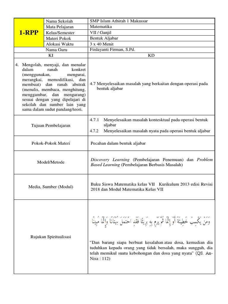 Pdf Rpp Aljabar Full Nopiyani Sutardi Academia Edu