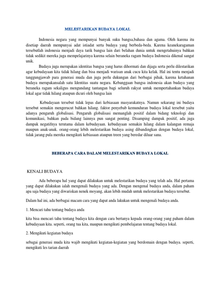 Bagaimana cara melestarikan budaya daerah. Humairotur rosyiqoh assalamualaikum wrwb. Maaf saya mau bertanya. Hamba para hamba allah bersama bapa bapa konsili suci demi kenangan abadi.