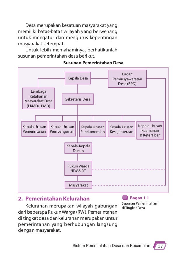 Berkaitan dengan pemerintahan desa yang. Dapat dibuat struktur pemerintahan desa seperti kamu lihat pada bagan di bawah ini. Desa di indonesia menurut peraturan pemerintah nomor 72 tahun 2005 tentang desa disebut bahwa desa adalah kesatuan masyarakat hukum yang memiliki batas batas wilayah.
