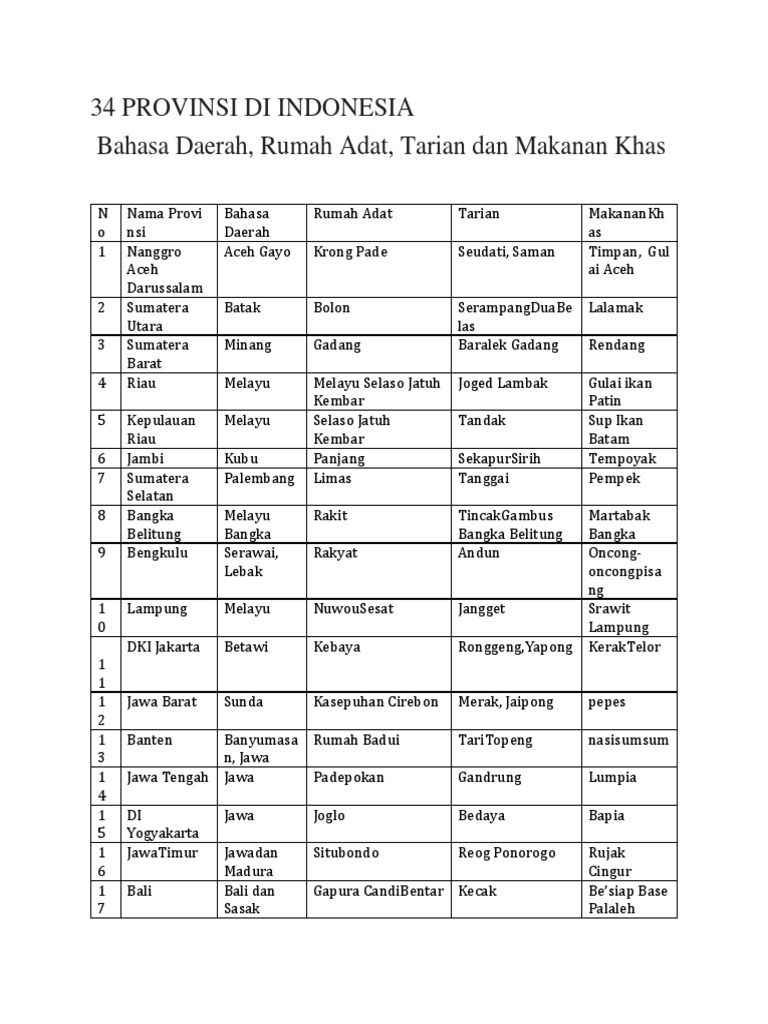 34 Provinsi Di Indonesia Beserta Pakaian Docx