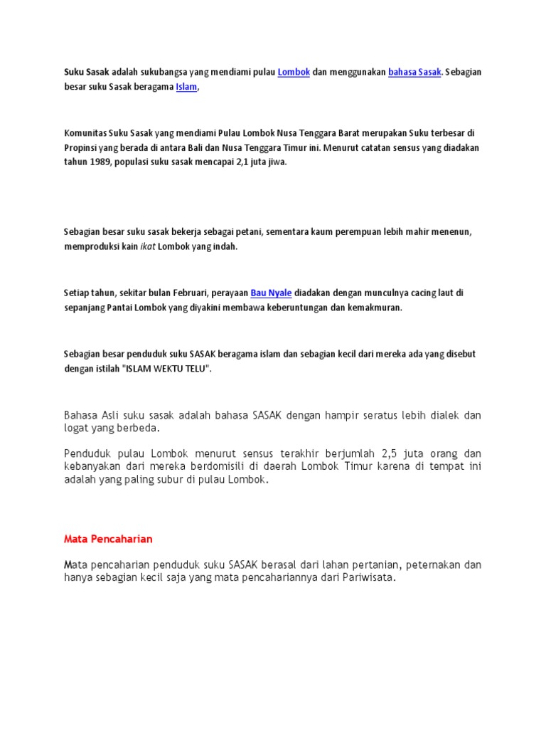 Suku Sasak Suku Sasak Adalah Suku Bangsa Yang Mendiami Pulau Lombok