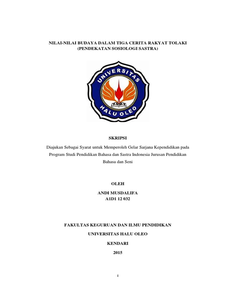 Nilai Nilai Budaya Dalam Tiga Cerita Rakyat Tolaki Pendekatan