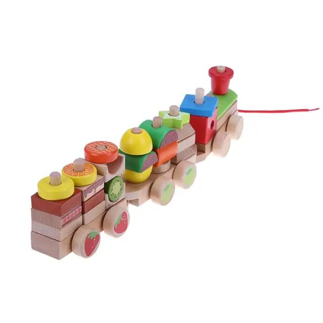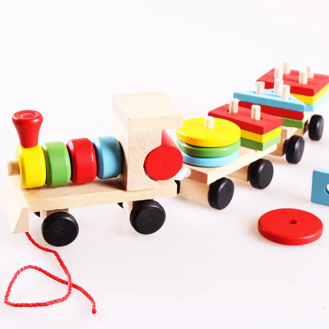 Kayu Mainan Mobil Kayu Susun Bentuk Geometri Kereta Mainan Diecasts