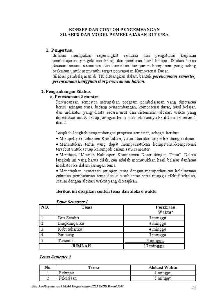 Contoh Silabus Tk Lengkap Kurikulum Tk Dokumen Ii Paud Jateng