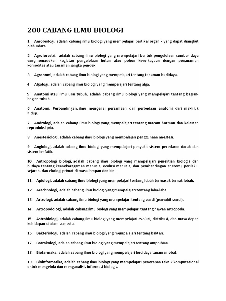 Ratusan Cabang Cabang Biologi Lengkap Dan Terbaru Generasi Biologi