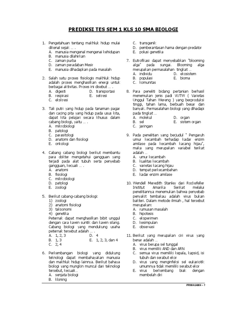 2 Contoh Soal Uas Biologi Sma Kelas 10 Kurikulum 2013 Tahun 2017