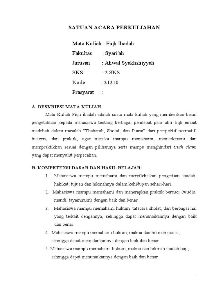 Satuan Acara Perkuliahan Fiqh Ibadah