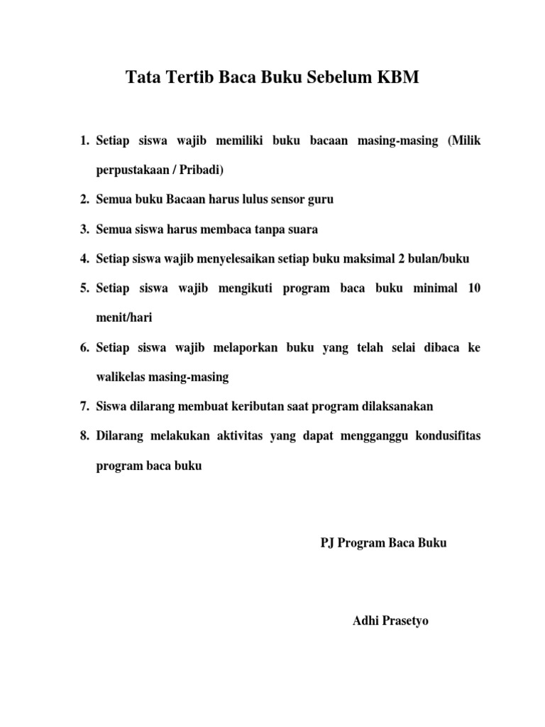Tata Tertib Baca Buku Sebelum Kbm