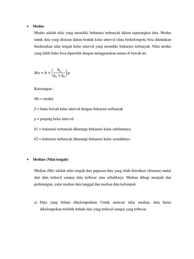 Rumus Mean Median Dan Modus Data Kelompok
