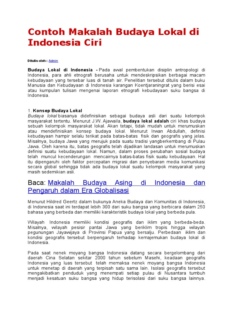 Contoh Makalah Budaya Lokal Di Indonesia Ciri