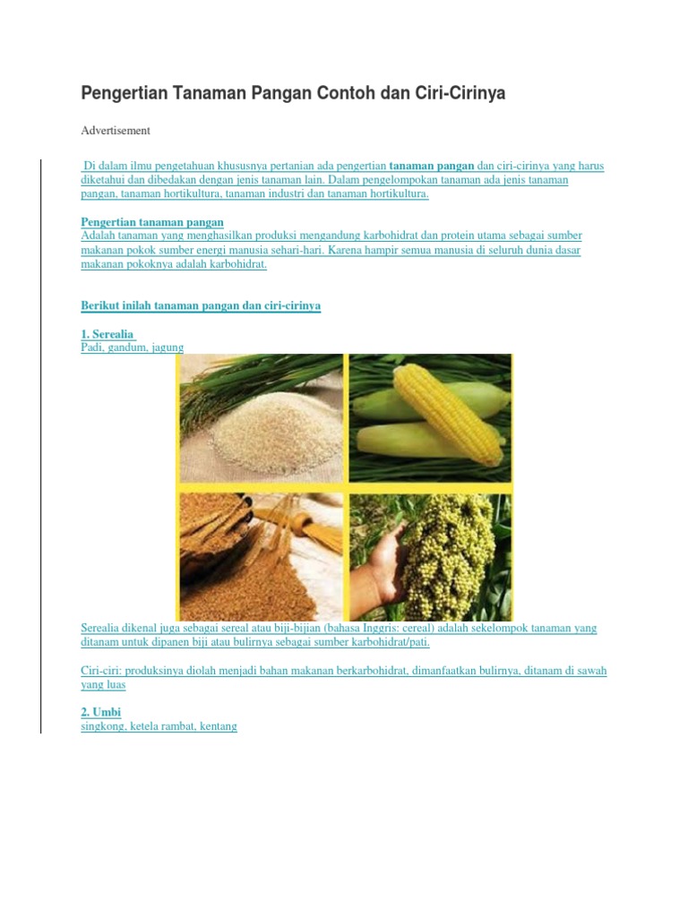 Pengertian Tanaman Pangan Contoh Dan Ciri