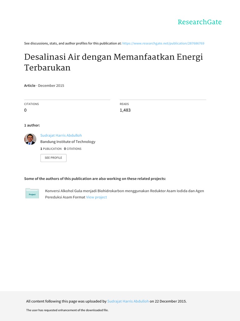 Desalinasi Air Dengan Memanfaatkan Energi Terbarukan