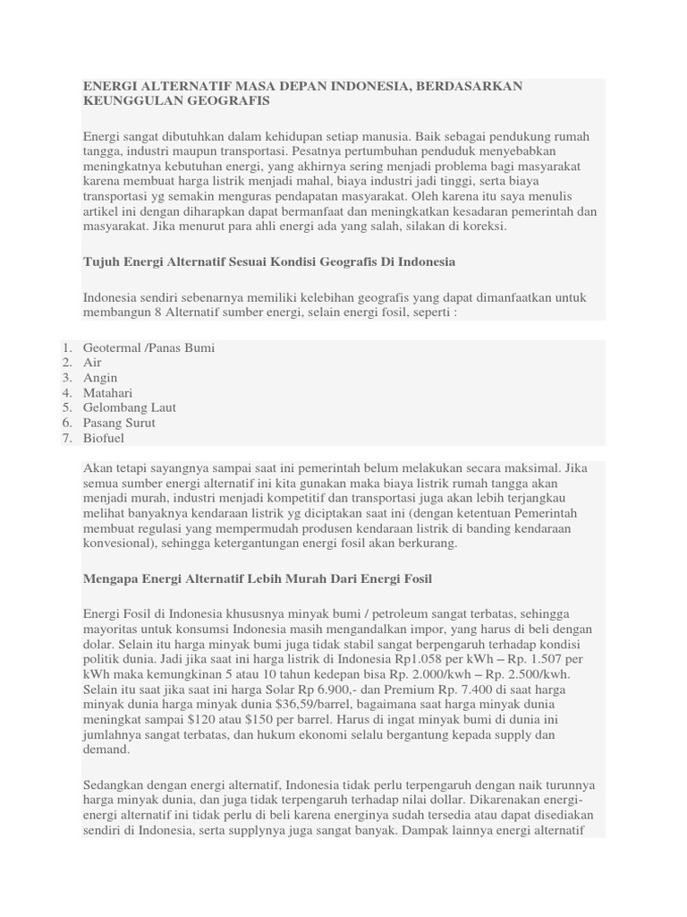 Energi Alternatif Masa Depan Indonesia Berdasarkan Keunggulan