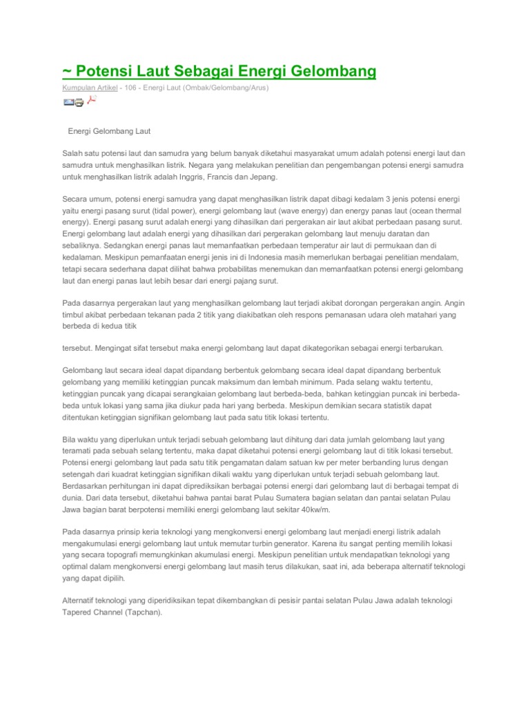 Pdf Ringkasan Pengembangan Teknik Energi Gelombang Menjadi Energi