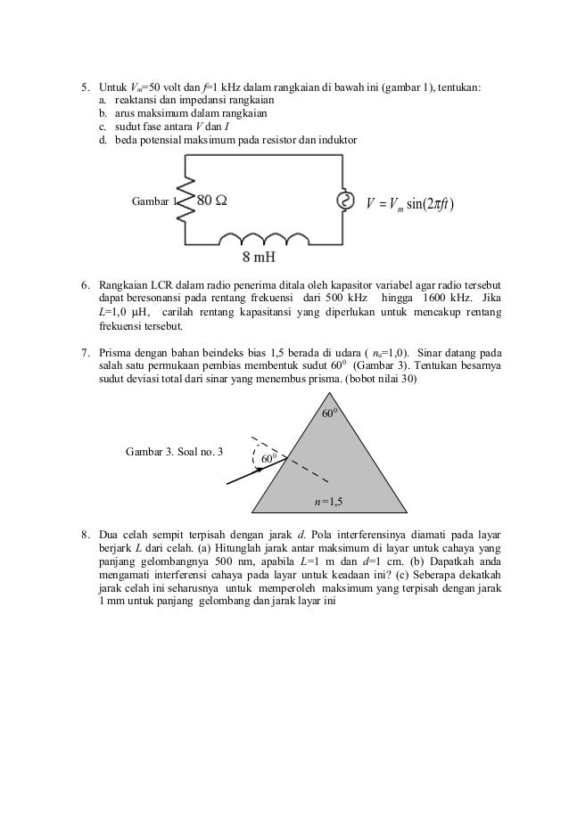 Soal Soal Ujian Fisika Dasar 2 Univ Ahmad Dahlan