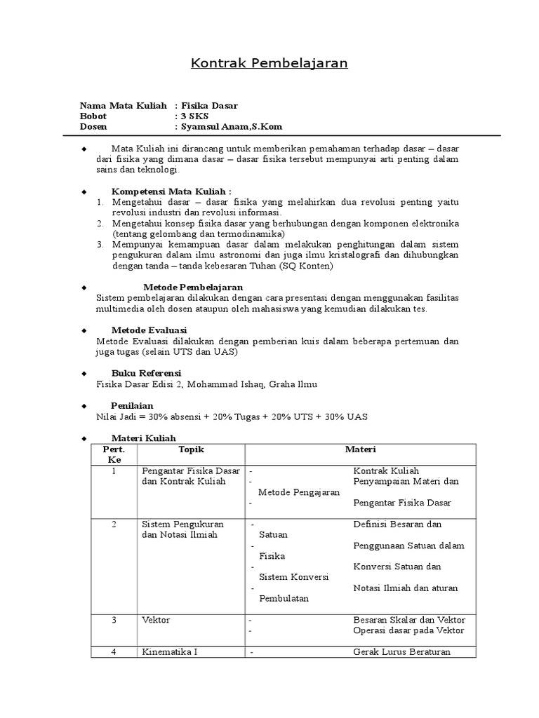 Kontrak Pembelajaran Fisika Dasar Doc