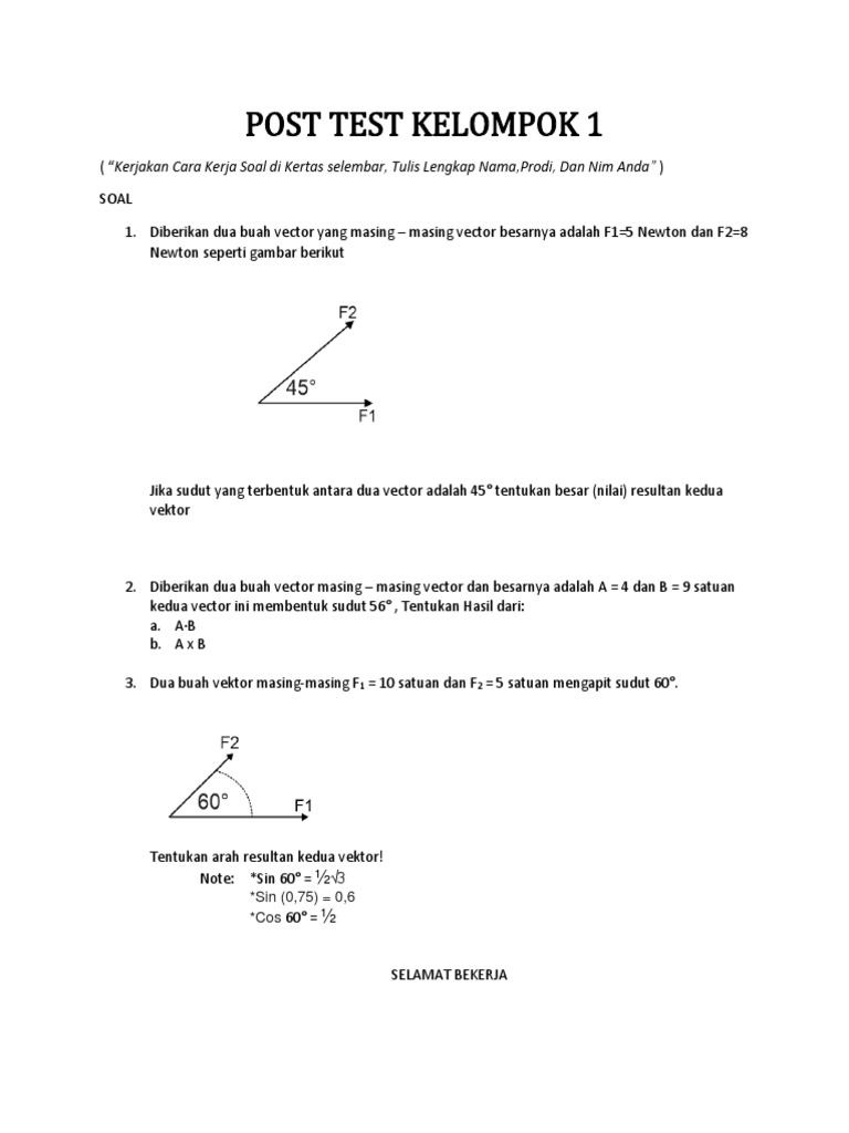 1 diberikan dua buah vektor gaya yang sama besar masing masing 10 newton seperti gambar berikut. Belajar fisika smp sma.