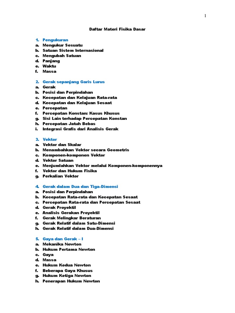 Daftar Materi Fisika Dasar Docx