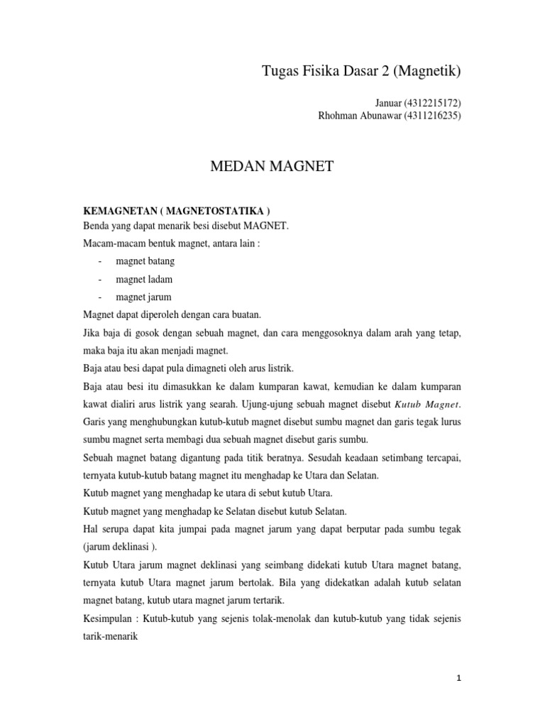 Makalah Fisdas 2 Makalah Fisika Dasar 2 Manfaat Medan Magnet Dalam
