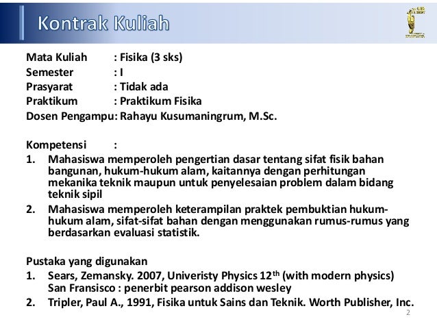 Ppt M Ata Kuliah Fisika Dasar Kode Mata Kuliah A100704107 Sks