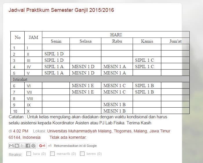 Teknik Sipil Umm On Twitter Jadwal Praktikum Fisika Dasar 2015